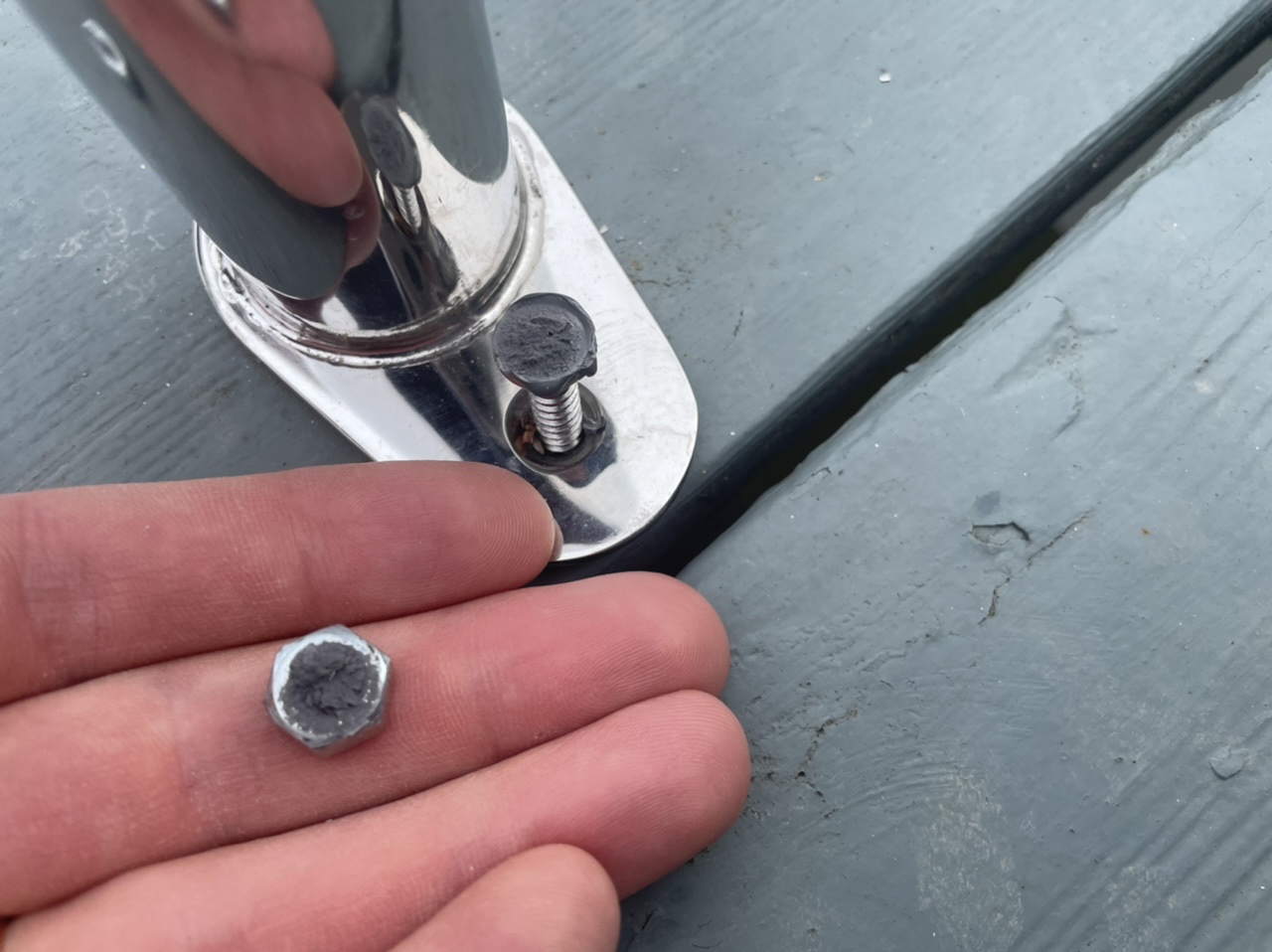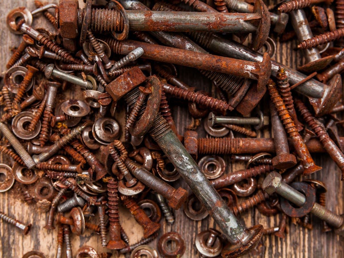 Đinh và ốc vít có thể bị gỉ sét do các tác động từ môi trường hoặc do tiếp xúc với hóa chất ăn mòn mạnh