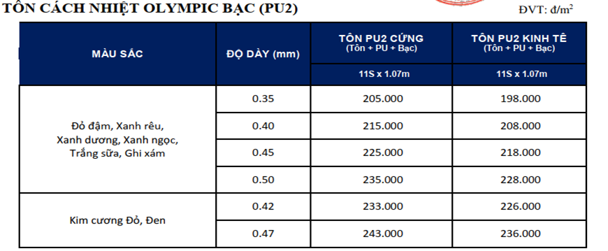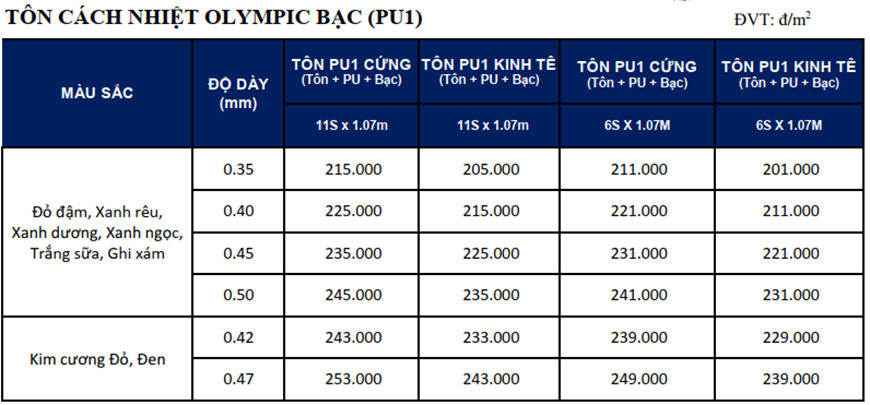 3. Tham khảo giá thành tôn lợp mái thương hiệu Olympic mới nhất