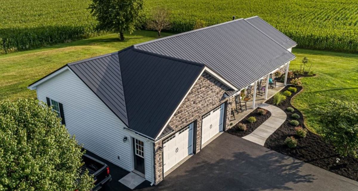 Công trình sử dụng tôn chống cháy Olympic màu ghi xám giữa cỏ cây bạt ngàn gợi sự bình yên