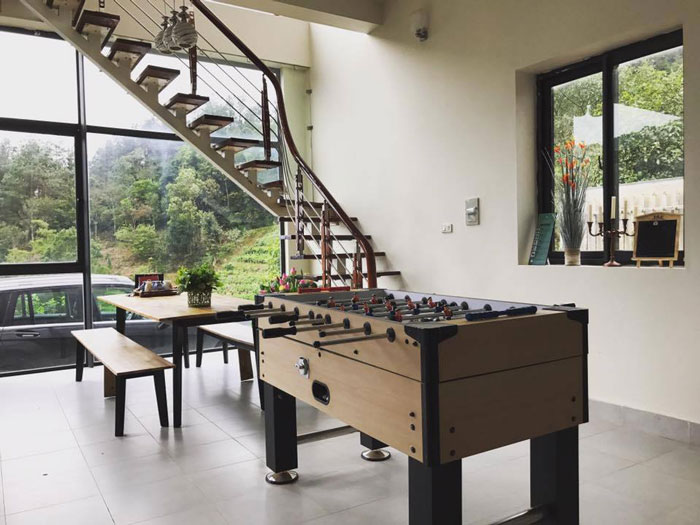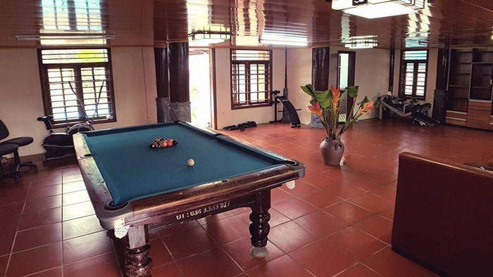 - Phòng khách thoáng mát, có bàn bi-a giải trí
