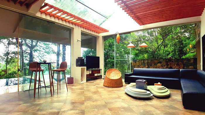 Phóng vút tầm mắt ra mãi xa, villa này nằm trên ngọn đồi cao nhất, một ngôi nhà sáng thức dậy có thể cảm nhận được hơi thở của núi rừng và chiều có thể ngắm nhìn mây lững lờ của mỗi hoàng hôn.