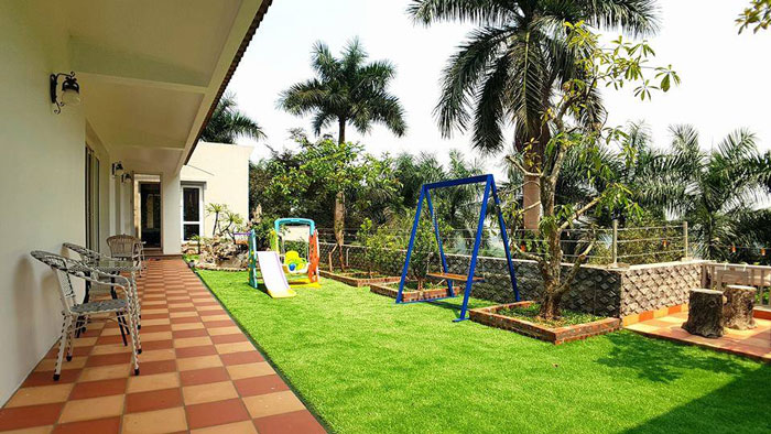 - Sân cỏ rộng rãi cho các bé chạy nhảy hay người lớn nằm dài đọc sách