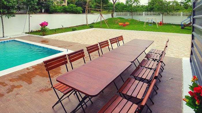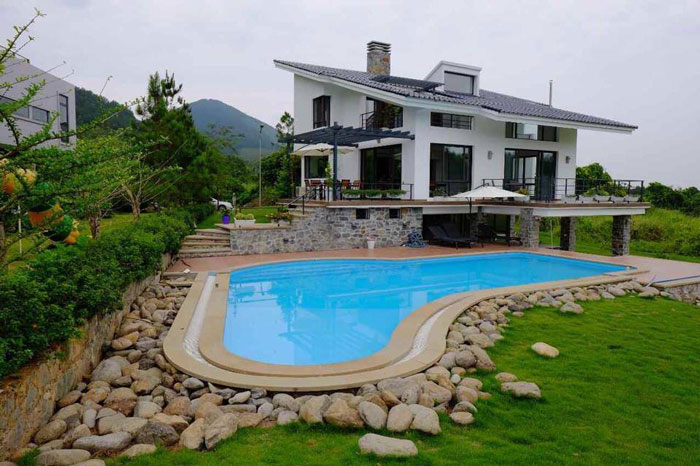 - Biệt thự có bể bơi, sân tập golf, ăn uống BBQ ngoài trời, phòng bi-a, karaoke ...