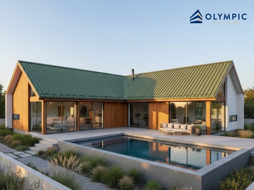 Gợi ý chuyên gia: Để đảm bảo độ bền và tính thẩm mỹ cao nhất cho ngôi nhà chữ L, Tôn Olympic là thương hiệu tôn uy tín đến từ nhà sản xuất Mỹ Việt bạn nên tham khảo. Với bảng màu đa dạng từ đỏ kim cương, xanh đen đến xám lông chuột, Tôn Olympic không chỉ bảo vệ ngôi nhà trước khắc nghiệt của thời tiết mà còn giúp gia chủ dễ dàng chọn được sắc màu chuẩn phong thủy, kiến tạo vẻ đẹp sang trọng và bền bỉ theo thời gian.