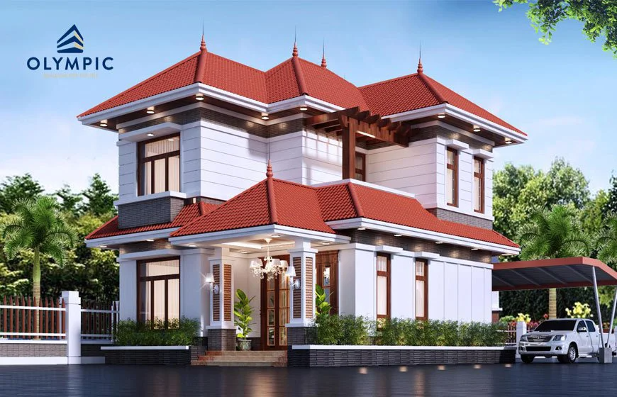 Tham khảo: Mãn nhãn với mẫu nhà 2 tầng tôn lợp mái màu đỏ đậm đẹp nhất hiện nay