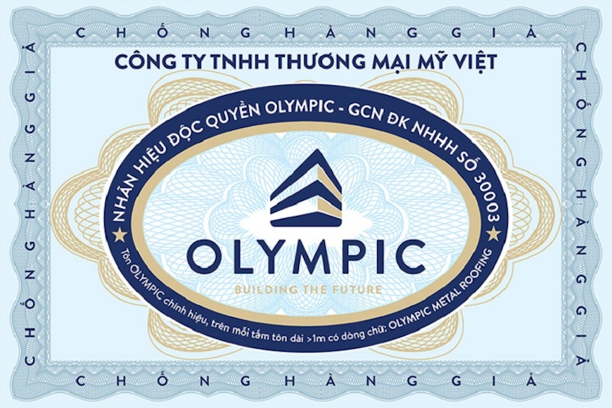Logo chính hãng của tôn Olympic được dán trên mỗi tấm tôn