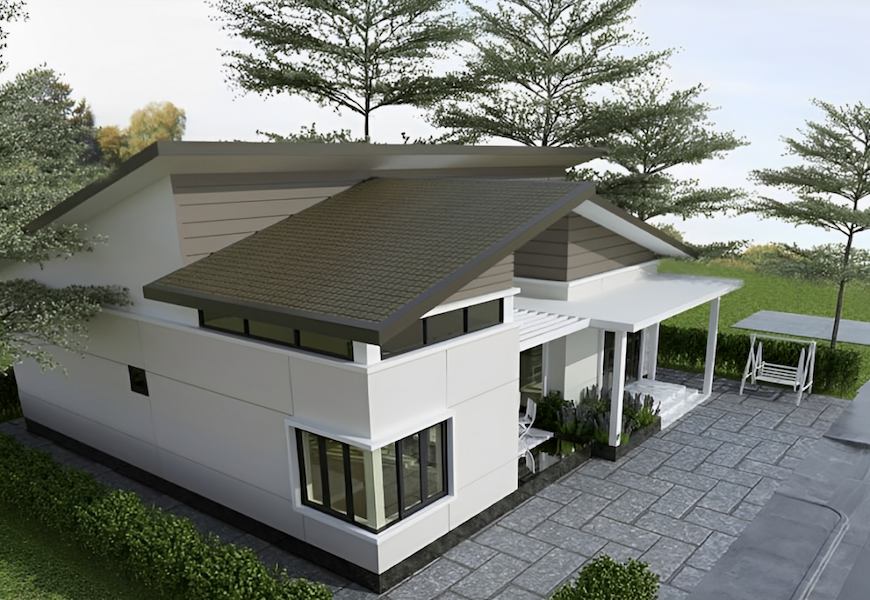 Mẫu thiết kế nhà cấp 4 mái tôn 60m² với hai phòng ngủ là sự lựa chọn hoàn hảo cho những gia đình nhỏ có con nhỏ. Thiết kế này không chỉ đáp ứng nhu cầu về không gian riêng tư cho các thành viên trong gia đình mà còn tạo ra một môi trường sống thoải mái và ấm cúng. Với hai phòng ngủ, các bậc phụ huynh có thể dễ dàng bố trí không gian cho trẻ em, đồng thời vẫn đảm bảo sự riêng tư cần thiết. Hơn nữa, diện tích hợp lý giúp việc sắp xếp nội thất trở nên linh hoạt và tiện lợi, tạo điều kiện thuận lợi cho sinh hoạt hàng ngày.
