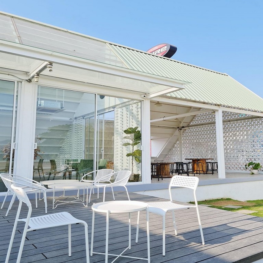 Quán cafe sử dụng tôn lạnh làm mái che tạo không gian thoáng đãng và sang trọng
