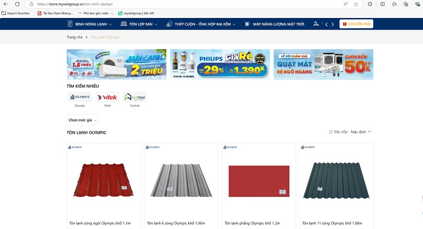Quý khách vui lòng truy cập vào Web Store chính hãng của Mỹ Việt và tìm kiếm tôn lạnh Olympic