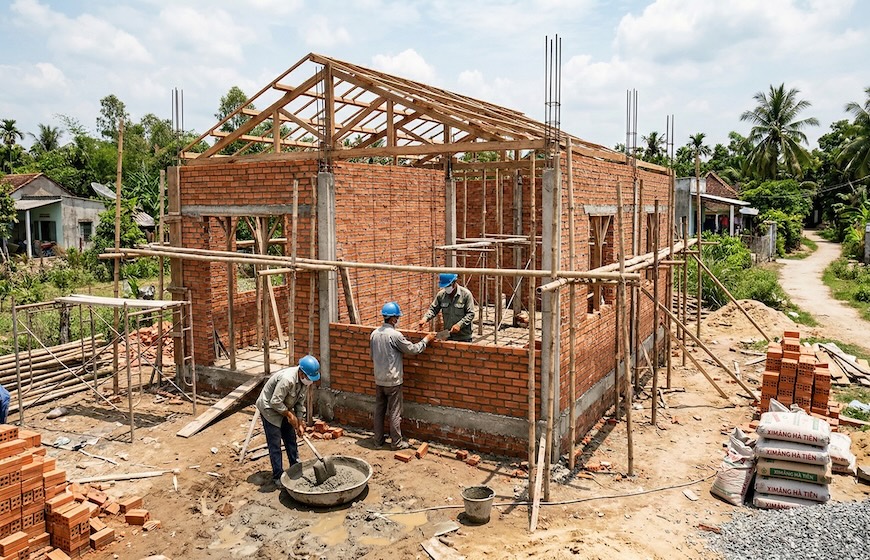 Mua vật liệu theo đợt: Thay vì mua hết một lần, hãy tính toán theo tiến độ (móng, tường, mái) để dòng tiền không bị thâm hụt quá nhanh.
